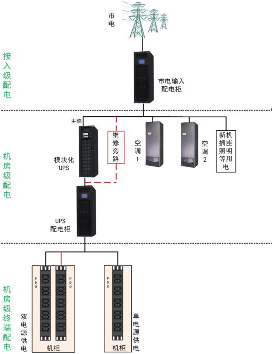 微型數據中心供配電系統C級(基本級)供配電系統,如下所述: